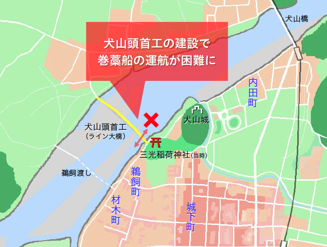 しかし、昭和30年代半ば、犬山頭首工(ライン大橋)の建設により巻藁船の運航が困難となり、完全に途絶えてしまいました。