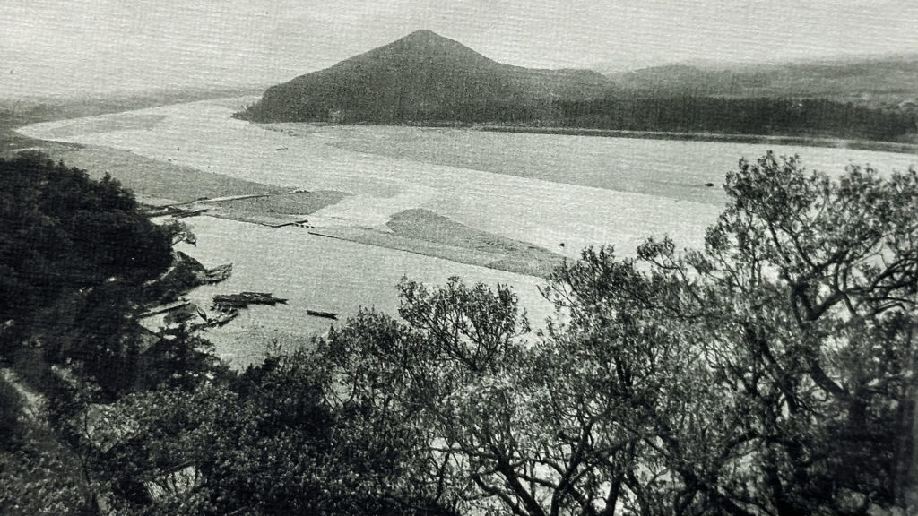 犬山城天守から見た、犬山頭首工ができる前の木曽川。